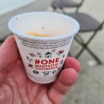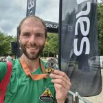 Im Ziel gab es dann sogleich die Medaille (schön, aber leider für alle Distanzen die gleiche) und ein Abwechslungsreiches Getränkeangebot. Aus dem Zielkanal heraus ging es wieder aufs Veranstaltungsgelände. Ich holte meine Tasche und zog mich um (Duschen waren auch vorhanden). Für alle Teilnehmer gab es ein kleines Menü als Zielverpflegung. Die Idee war gut und auch die Tatsache, dass es eine vegetarische Option gab, ist positiv anzumerken. Geschmacklich hat es mich jetzt nicht überzeugt, aber da kann man es ja vermutlich nie jedem Recht machen. Die Grundidee halte ich insgesamt für gut.