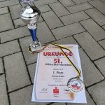 Zeitnah nach dem Zieleinlauf erfolgten dann auch die Siegerehrungen. Zunächst wurden die Gesamtsieger mit Pokalen und kleinen Sachpreisen ausgezeichnet. Anschließend folgten die Altersklassen (sobald die drei Erstplatzierten eine AK im Ziel waren). Als Gesamtvierter konnte ich dann auch die AK35 gewinnen und wurde ebenfalls mit Pokal, Urkunde und einem Sixpack einheimischen Bieres ausgezeichnet.