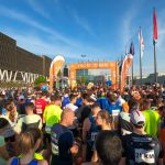 Kurz vor 17 Uhr nahmen wir dann erneut die Tram zur LUXEXPO. Erwartungsgemäß war die Bahn zu diesem Zeitpunkt schon relativ voll, da sie das Hauptverkehrsmittel zur Anreise zum Eventgelände war. Die Anreise verlief aber dennoch ohne Probleme und so waren wir mit genügend Vorlauf im Start-/Zielbereich des ING Night Marathon Luxemburg angekommen. Auch hier füllte es sich zusehends, aber aufgrund der Größe des Areals und der Weitläufigkeit fühlte es sich nie überlaufen an. Wir brachten zunächst unsere Kleiderbeutel zur Aufbewahrung und ließen uns anschließend etwas in der Sonne nieder, da bis zum Start um 19 Uhr noch gut eine Stunde Zeit war.