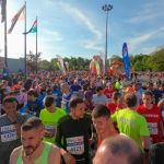 Pünktlich um 19 Uhr ertönte nach minutenlangen Einheizen der Moderatoren der Startschuss bei grandioser Stimmung. Marathon-, Halbmarathon- und Teamläufer machten sich gemeinsam auf den Weg. Die Strecke führte zunächst ca. 4km leicht abschüssig in Richtung Stadtzentrum. Hier ließ ich mich natürlich wieder von der Stimmung mitreißen und lief viel zu schnell los. Es folgten ein paar Kurven durch einen kleinen Park bevor es dann zunächst in ein Wohngebiet und anschließend in die Altstadt ging. Meine Pace pendelte sich irgendwo um die 4:10min/km ein, womit ich gut leben konnte. Unterwegs gab es immer wieder Stimmungsnester, die die Teilnehmer vorantrieben. Das Spektrum war bunt gemischt, es gab Bands, DJs und Chöre, die performten und Zuschauer sowie Läufer bei Laune hielten. Zudem waren auf der Strecke auch ausreichend Verpflegungsstationen vorhanden, die bei den fast sommerlichen Bedingungen durchaus notwendig waren.