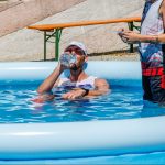 Zusätzlich gab es mehrere Stellen, an denen mit Wasserschläuchen für Abkühlung von oben gesorgt wurde. Nicht zuletzt war auch der Pool, der im Ziel aufgebaut wurde, eine tolle Idee, den Läufern Abkühlung zu verschaffen.