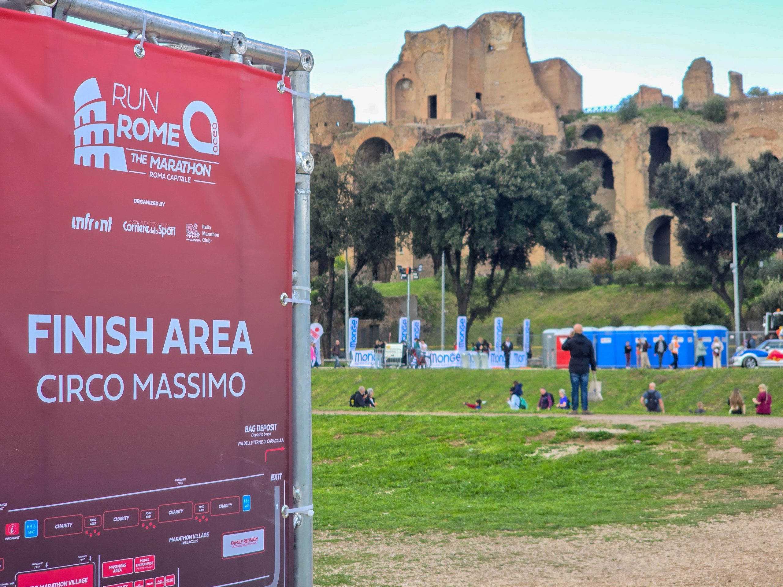 Nach gut 36 Kilometern kamen wir endlich in einen Bereich, der von Zuschauern gefüllt war. Ab jetzt war die Stimmung einem Event dieser Größe auch angemessen und die Anfeuerungen pushten die Teilnehmer nochmal auf die letzten Kilometer. Auch bei mir lief es weiterhin nach Plan, ich konnte mein Tempo dezent anziehen und erreichte so nach 2:56:56 das Ziel am Circo Massimo.