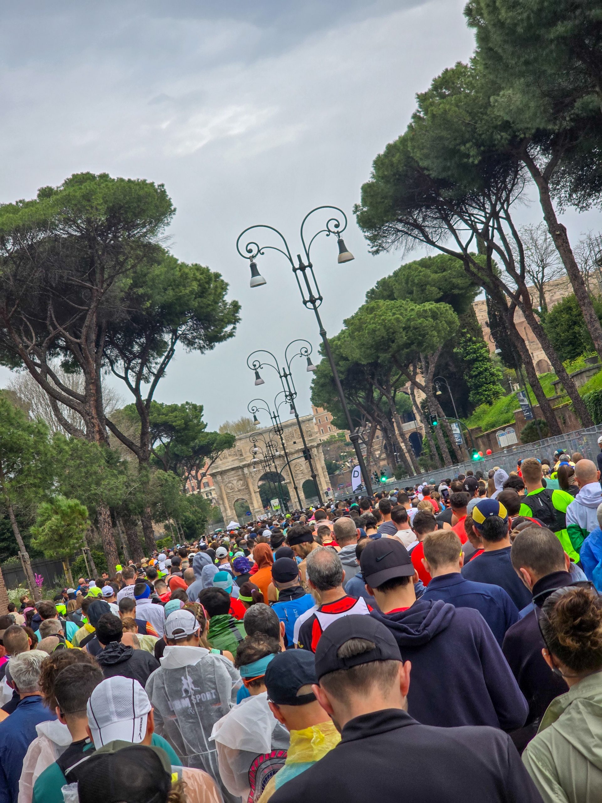 Irgendwann war es dann doch soweit, dass die Läufer eingelassen wurden und der Weg führte zwischen historischen Stätten bis zum Startblock vor dem Colosseo. Leider hat es der Veranstalter versäumt, für ausreichend Entsorgungsmöglichkeiten zu sorgen. Das führte dazu, dass unzählige Läufer ihre Notdurft am Absperrgitter der Startaufstellung verrichteten. Bei einem Starterfeld von gut 35.000 Teilnehmern sollte ein Ausrichter bei der 31. Auflage eines Laufes doch gelernt haben, den Bedarf angemessen zu kalkulieren.