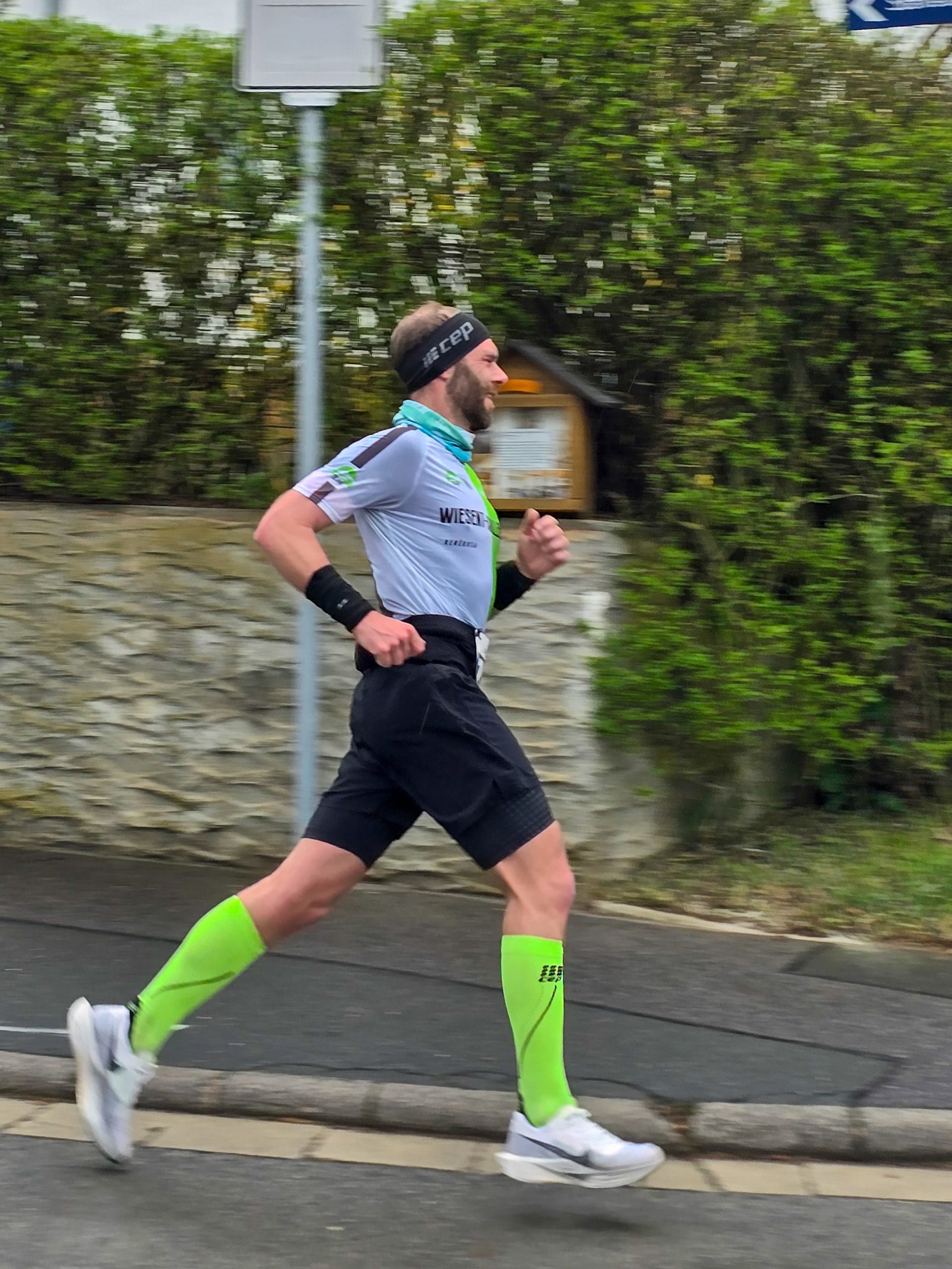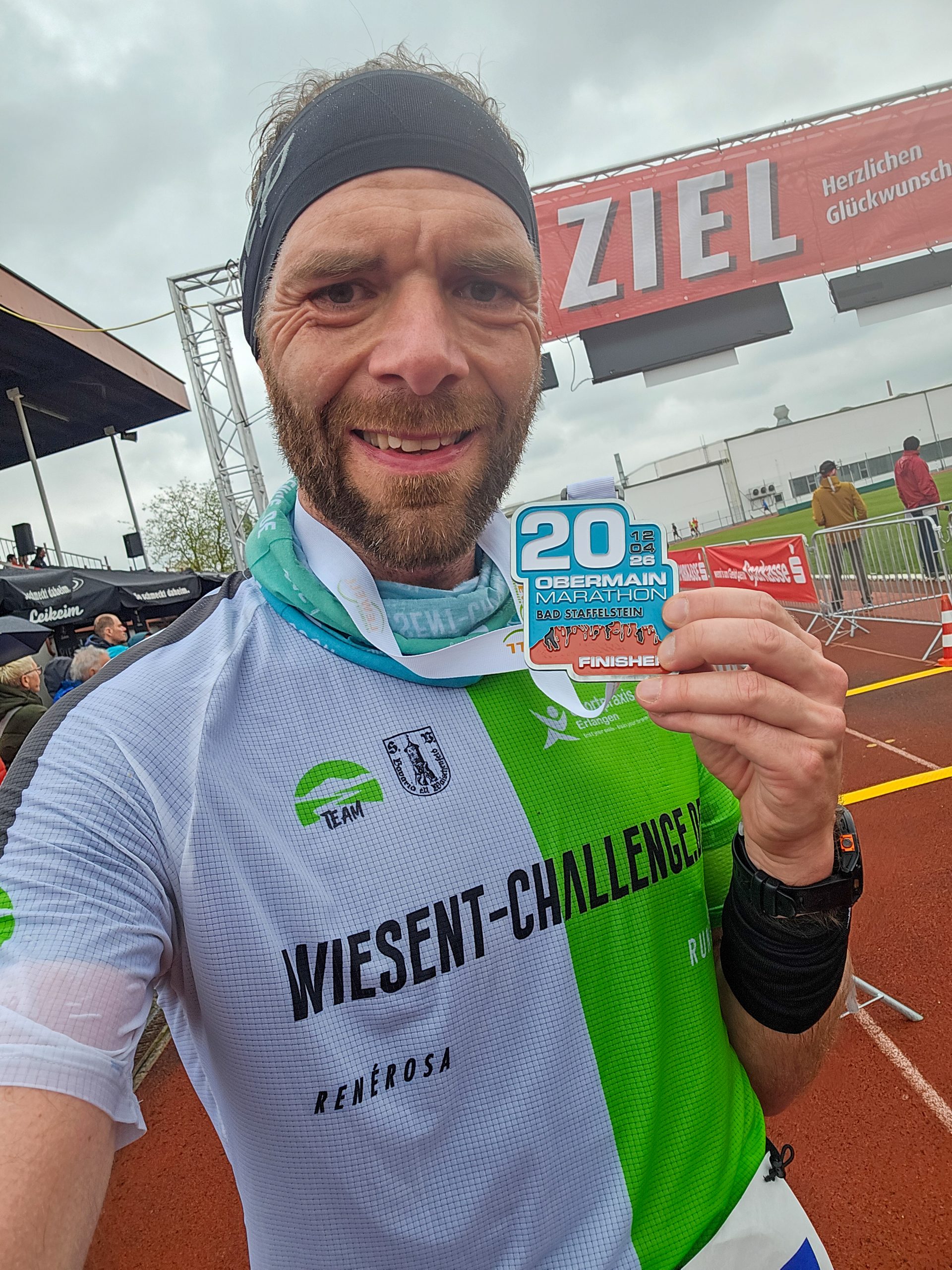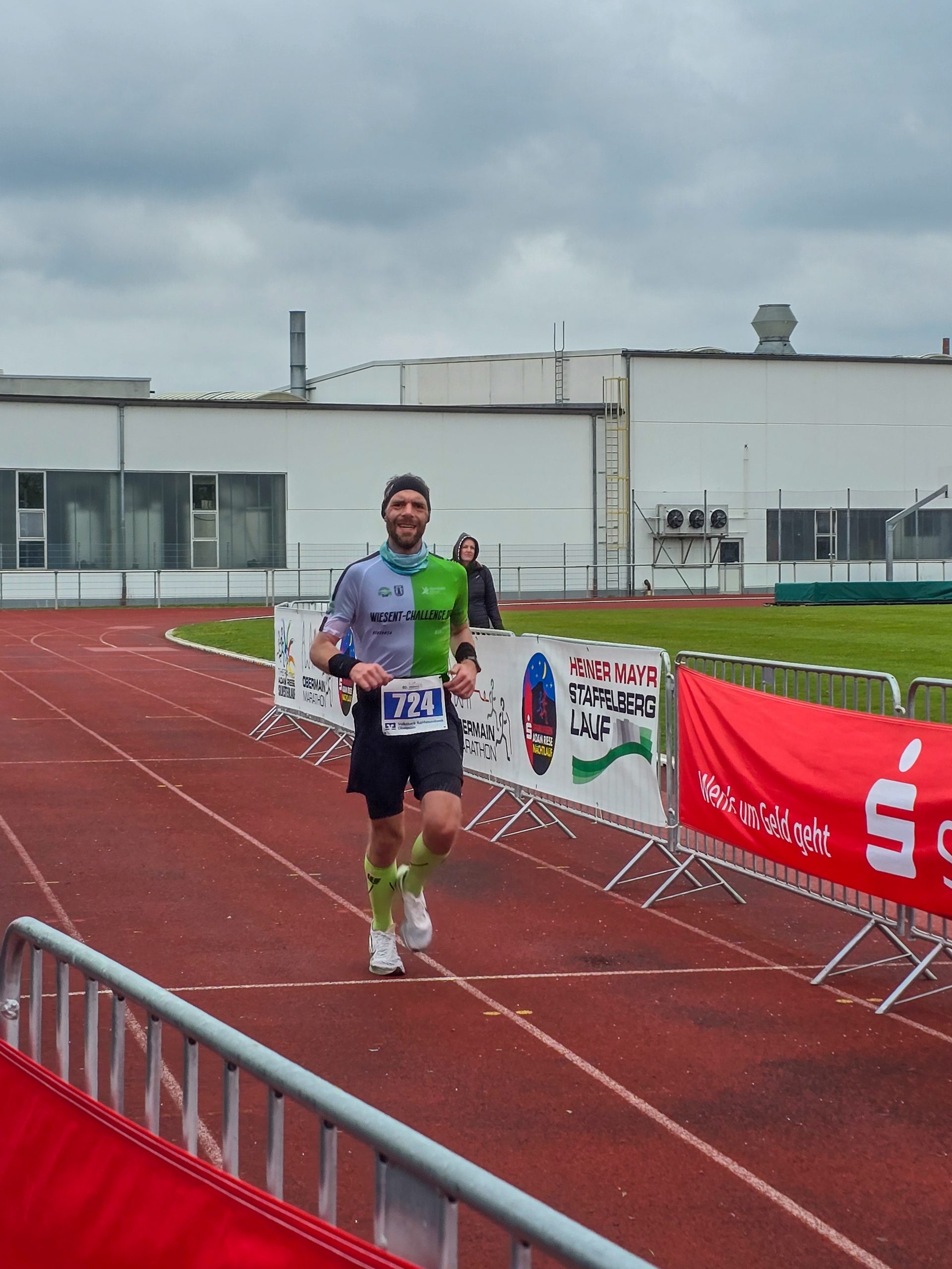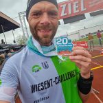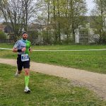 Hart wurden für mich die letzten beiden Kilometer um den Kurpark, die über einen Schotterweg führten und sich schon zogen. Im Anschluss daran liefen wir eine Ehrenrunde auf der Bahn des angrenzenden Sportplatzes, wo sich dann auch das Ziel befand. Dieses erreichte ich nach 1:16:17 als Siebtplatzierter. Auch meine Begleiterin hatte es ins Ziel geschafft und meinen Einlauf dokumentiert.