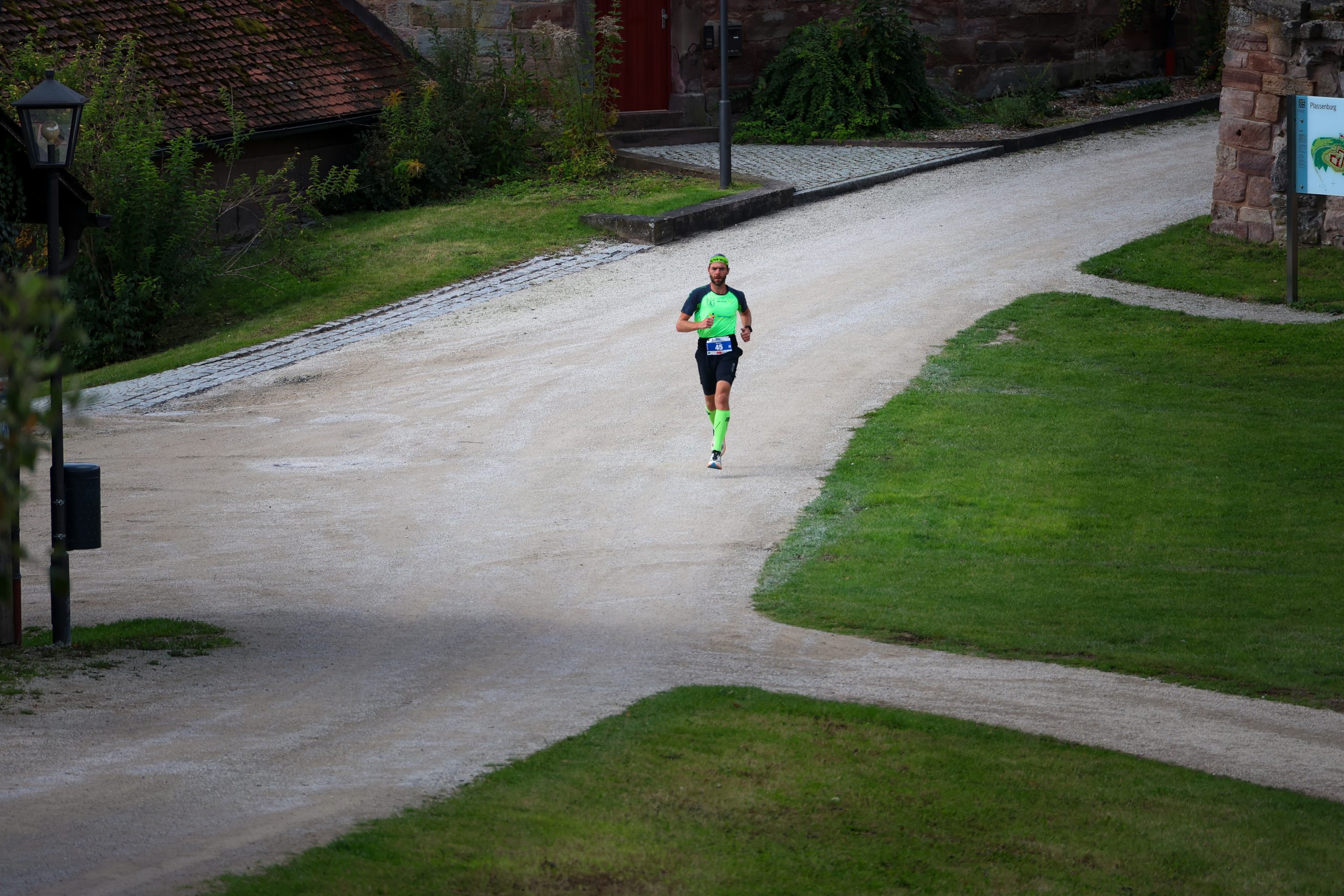 Pünktlich 12:15 Uhr ertönte der Startschuss zum Long Trail und ich machte mich mit ca. 80 anderen Teilnehmern auf den Weg. Der Streckenverlauf ähnelte dem des Vorjahres und so ging es erneut zum „Warm-Up“ auf die Plassenburg, bevor uns der Kurs über herrliche Waldwege und Trails durch die umliegenden Wälder führte. Die Burg erreichte ich als Zweitplatzierter und im folgenden lief ich ein sehr einsames Rennen. Lediglich auf einem kurzen Abschnitt um Kilometer 14 verliefen Short und Long Trail auf dem gleichen Weg und ich sah ein paar andere Teilnehmer um mich herum.