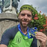 Die letzten Meter verliefen dann auf asphaltierten Wegen und über Treppen zurück zum Marktplatz, wo ich das Ziel als Zweitplatzierter nach 2:09:31 erreichte.