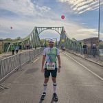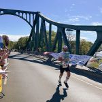 Kurz vor Kilometer sechs teilte sich die Strecke dann zum zweiten Mal, die 10km Läufer durften direkt in den Park Babelsberg und die nächsten 3km an der Havel entlanglaufen. Raus aus dem Park ging es dann über eine kleine Steigung nach Klein Glienicke und von hier zur B1, welche zum Ziel auf der Glienicke Brücke führte. Am Parkausgang musste ich meinen Mitstreiter dann um ein paar Sekunden ziehen lassen, doch nach 39:27 Minuten erreichte auch ich das Ziel in der Mitte der „Bridge of Spies“.