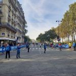 Nachdem alle Vorbereitungen getroffen waren, machte ich mich gegen 8:30 Uhr auf den Weg zu den Startblöcken die sich auf der Pont d’Iena befanden. Hier wurde auch ein Unterhaltungsprogramm geboten. Jeder, der meinte für das Event wichtig zu sein, durfte sich kurz zu Wort melden und eine Trainerin turnte ein paar Warm-up Übungen vor (was angesichts der Temperaturen gar nicht verkehrt war).