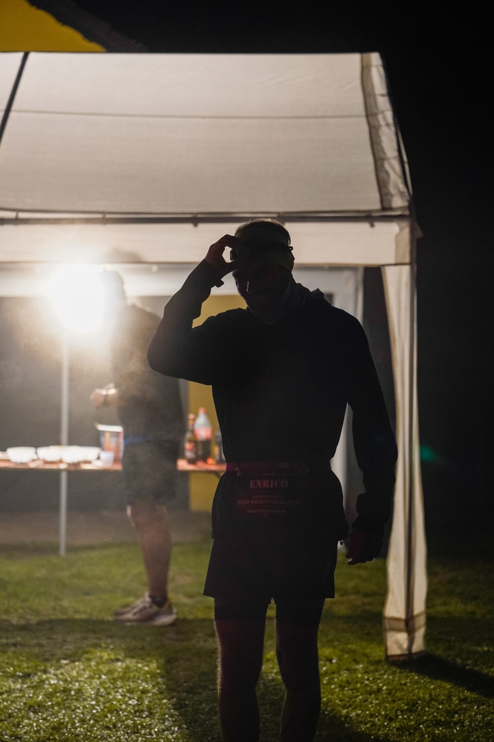 Als ich nach dieser Runde ins Ziel lief, waren Sandra und Markus zur Unterstützung vorbeigekommen und hatten Pizza für unser Team dabei. Eine Stärkung zur richtigen Zeit, bevor es in die kalte, dunkle Nacht gehen sollte. Die achte Runde lief entsprechend gut und ich war kurzzeitig motiviert, doch bald sollte sich herausstellen, dass dies kein Dauerzustand war.