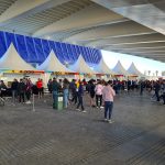 Die erste Anlaufstelle auf der Expo war auch gleich die Ausgabe der Startnummer. Vor dem eindrucksvollen Gebäude waren Pavillons aufgebaut, in denen die Helfer die Nummern ausgaben. Weiter ging es in Richtung Gebäudeeingang und noch vor dem Betreten wurde der Chip der Nummer auf Funktionsfähigkeit überprüft (inkl. Richtigkeit der persönlichen Daten).